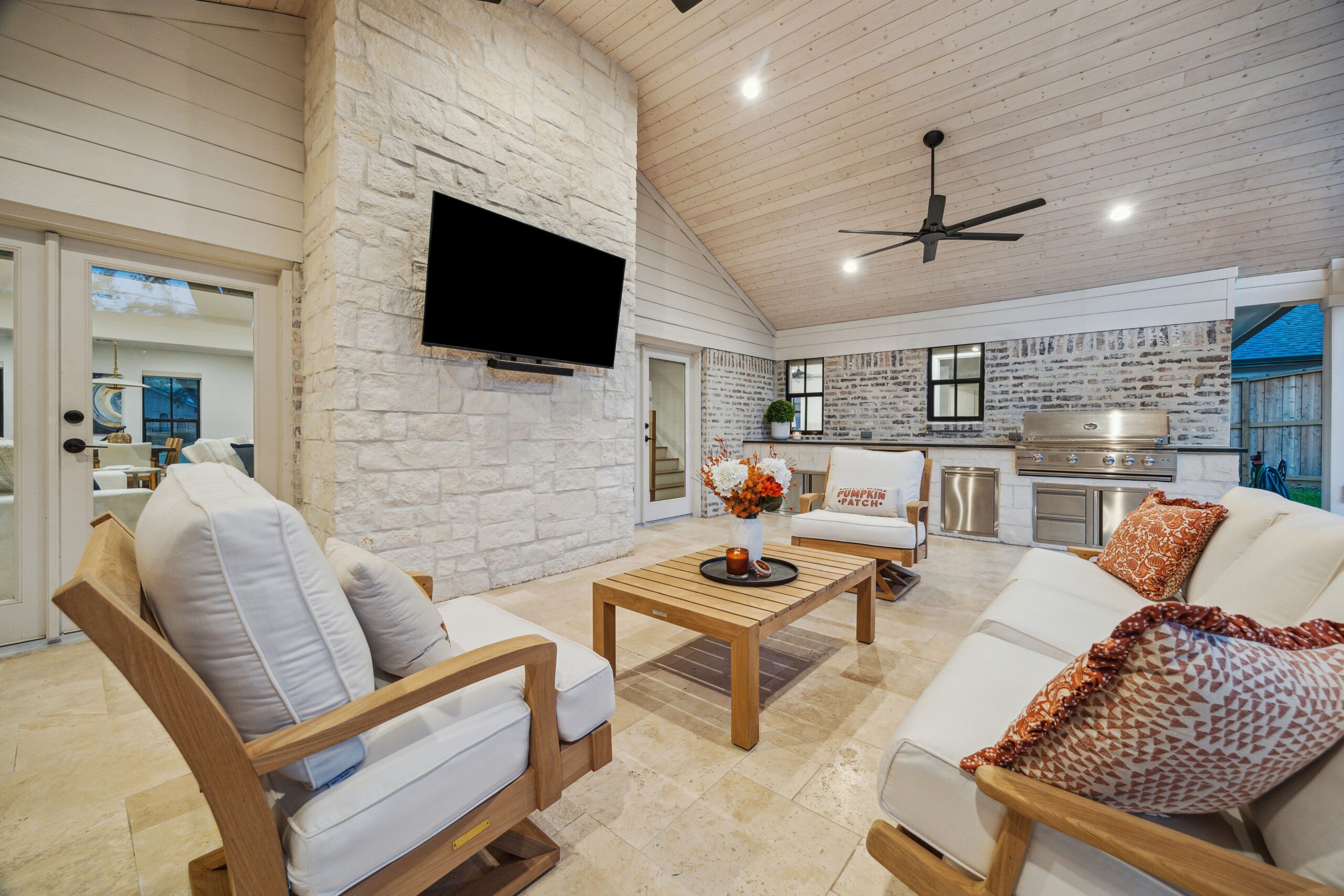 TCP removed the existing low flat ceiling and knee wall, immediately eliminating what made the space feel closed in. The vaulted ceiling dramatically opened up the area, creating an elegant outdoor room with architectural height and better airflow.